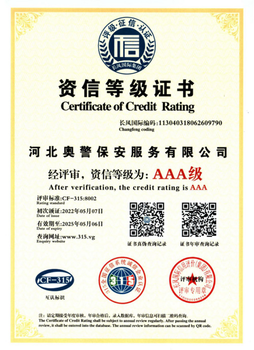 奧警邯鄲保安公司是一家民營(yíng)保安服務(wù)公司,工商行政管理局登記注冊(cè),獲取相關(guān)等級(jí)資質(zhì)證書,是一家大型的保安連鎖服務(wù)公司。